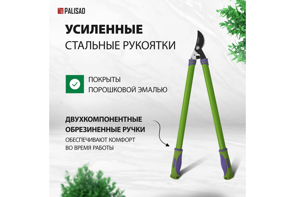 - Овальная форма лезвий сучкореза 700мм PALISAD 60506 придает рукояткам дополнительную прочность на изгиб;