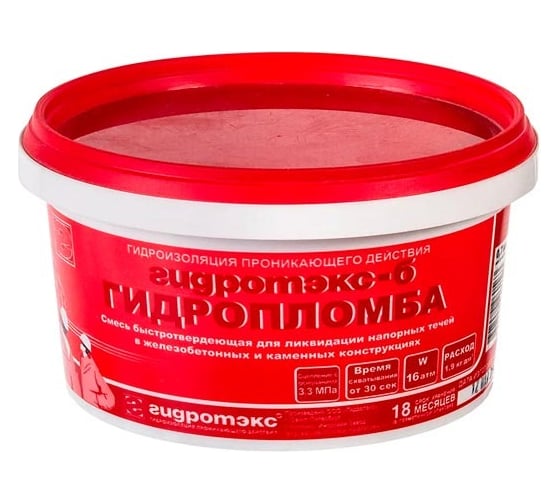 - Для приготовления гидроизоляционной смеси готовой к применению: из упаковки в удобную, предварительно смоченную емкость, высыпать сухую гидроизоляционную смесь ТМ «Гидротэкс-Б», в количестве необходимом для заделки одного подготовленного места напорной течи (примерно 300- 400г. сухой смеси).