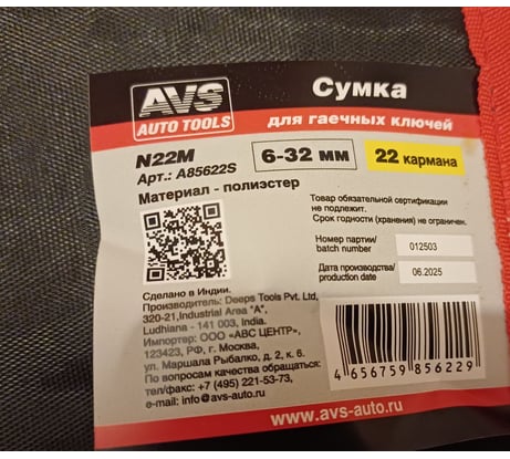 Сумка для гаечных ключей AVS 22 карманов N22M A85622S