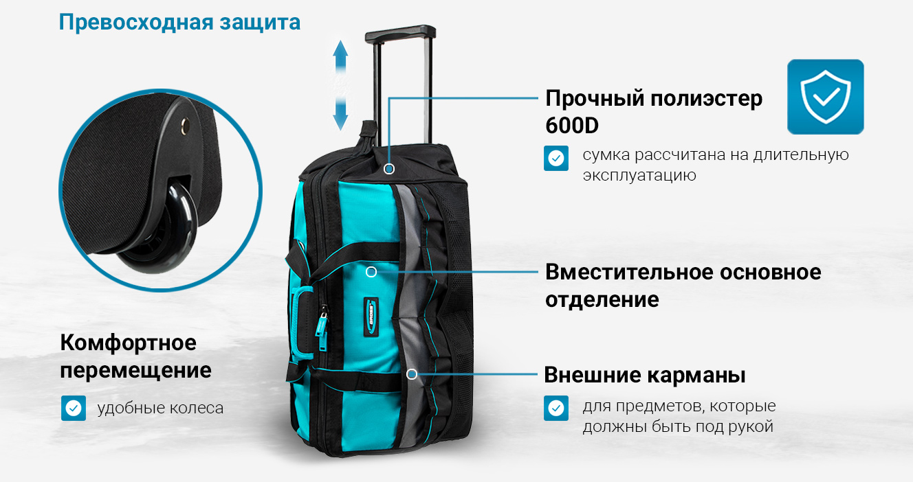 Отличная сумка. Прочная, вместительная и на колёсиках