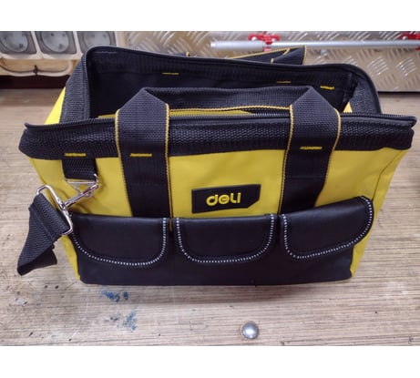 Сумка для инструментов DELI dl430013 310x170x220 мм, ткань oxford, плечевой ремень, 5 карманов 98478 используется для хранения и транспортировки инструмента, хранения малярных и отделочных инструментов, прекрасно подходит для похода на рыбалку и даже в качестве сумки для фитнеса.