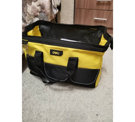 Сумка для инструментов Deli DL430018 используется для хранения и транспортировки инструмента, хранения малярных и отделочных инструментов, прекрасно подходит для похода на рыбалку и даже в качестве сумки для фитнеса.