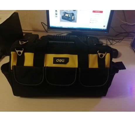 Сумка для инструментов DELI DL430116 360x180x250мм, ткань Oxford, 14 карманов 98480 используется для хранения и транспортировки инструмента, хранения малярных и отделочных инструментов, прекрасно подходит для похода на рыбалку и даже в качестве сумки для фитнеса!!!