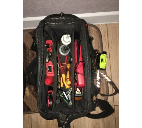 1.Износ карабина. Это косяк прям откуда не ожидал. Купил новые и придеься как-то химичить и менять, выкидывать сумку из-за этого рано. 2. Отвертка веритакльно не помещатся, приходится ложить и потом лазить на дне. Либо можно сумку не закрывиь тогда отвертка помещается, но для отверток там нет особо лямок для вертикального хранентя.