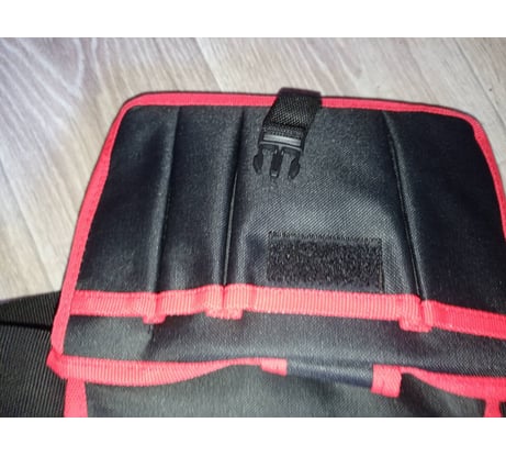 Пояс, он же плечевой ремешок, инструмент в сумке не падает, а кремко держиться в кармане, много разнообразных карманов для видов и типов инструмента