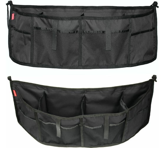 Сумка-органайзер Tplus черная T002224 из оксфорда отличается практичностью. Применяется для хранения автоаксессуаров. Имеет два вместительных, два угловых, два сетчатых кармана, маленькие отделения под отвертки и ключи.