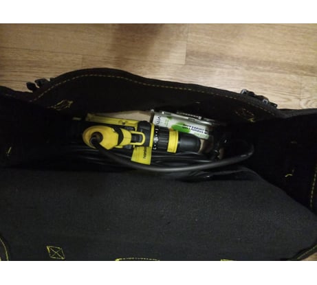 Внутри нет карманов, только перегородка из тонкого материала. Во внешних карманах носить инструмент сложно, особенно если по стремянке бегать вверх-вниз - цепляться будет, как репей, и, естественно, выпадать. Наглухо не закрывается, если случайно перевернётся, то большая часть инструмента, или расходка уйдут в полёт к земле.