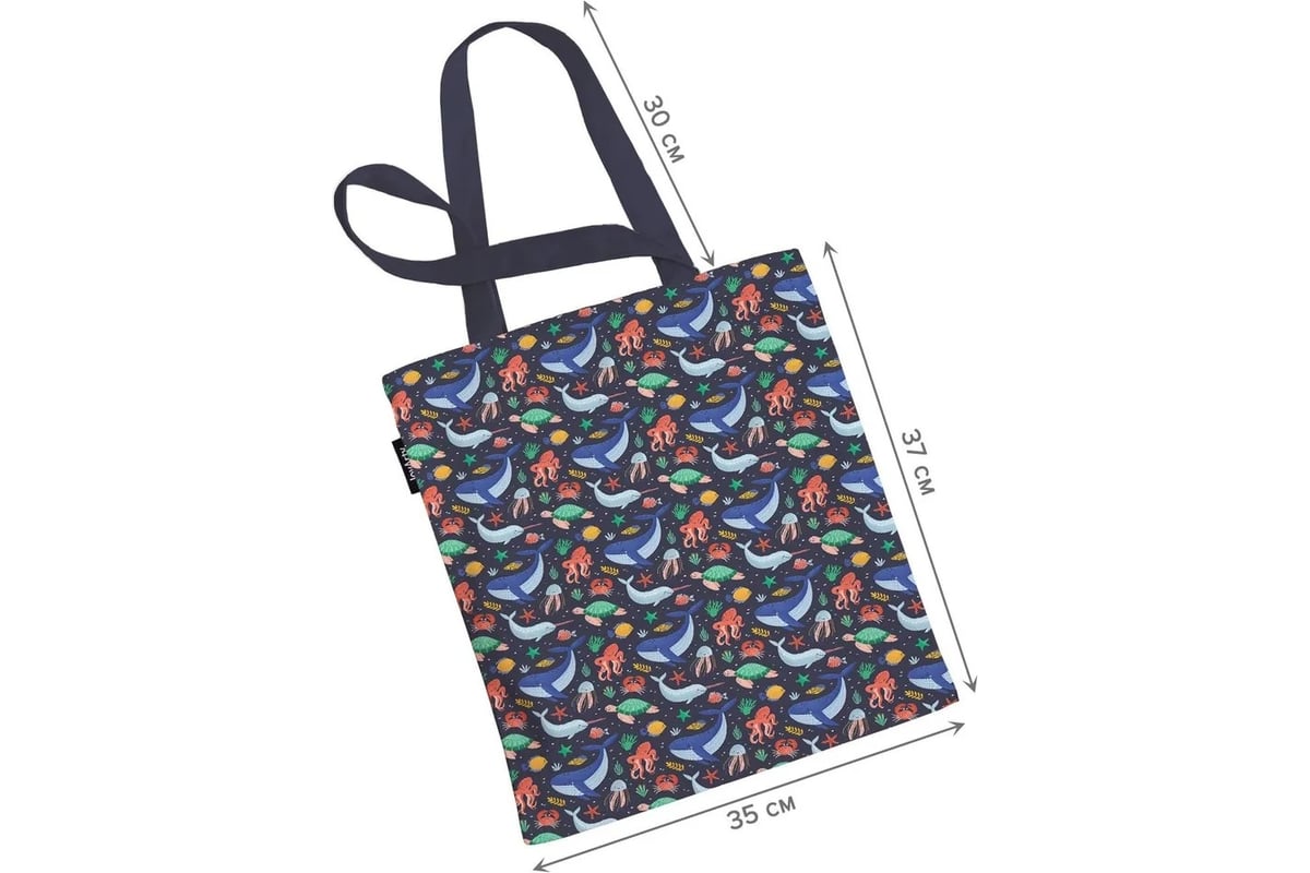 Шоппер оснащен удобными прочными ручками, его можно повесить на плечо или нести в руках.