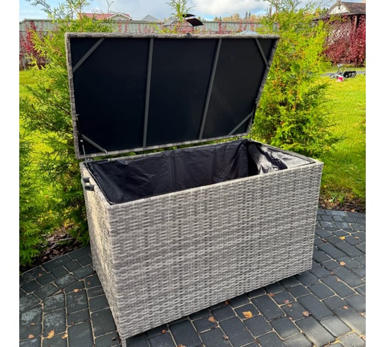 Сундук для хранения Royal Family KARL 120 серый с колёсиками – идеальное решение для тех, кто ценит практичность и элегантность. Этот вместительный сундук изготовлен из искусственного ротанга ручного плетения, что придаёт ему особую изысканность и долговечность. Каркас из стали обеспечивает прочность и устойчивость конструкции.