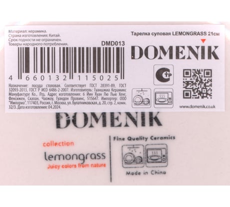Суповая тарелка DOMENIK LEMONGRASS 21 см DMD013