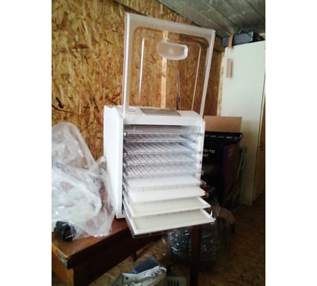 Это уже не первая сушилка этого производителя. Докупили, чтобы в больших объемах сушить урожай (зелень, фрукты, ягоды, овощи, грибы). Прекрасно подходит для приготовления пастилы. Зимой готовили полезные и вкусные подарки на Новый год, сушили фруктовые чипсы (яблоки, груши, апельсины, бананы, лимоны, киви и многое другое). По нашим рекомендациям и после пробы фрипсов соседи тоже купили сушилку. Еще используем для приготовления йогурта, т.к. держит нужную температуру. Очень выручает встроенный таймер, отключается сушилка сама. Помогает аппарат и при подъеме теста, когда не очень тепло в квартире в межсезонье. Есть приборы, которые используются время от времени, но эта сушилка не убирается на длительное хранение никогда. Стоит всегда под рукой на кухне. Очень надеемся, что дойдут руки и до приготовления в ней мясных чипсов и колбасных пивчиков. Пока и без этого у нашей сушилки работы хватает:)