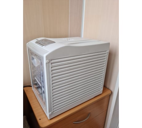 Отлично сушит, нешумная. Крышка убирается вверх. Отлично подходит для сушки самых разнообразных продуктов. Сначала отключается тэн, а через минуту уже вентилятор, что минимизирует возможность оплавления пластиковых деталей. Разнообразные поддоны.