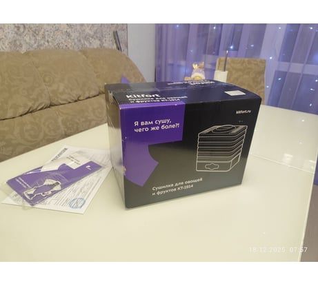 Сушилка очень понравилась. Незаменимая вещь. Сушили яблоки, киви, апельсины. Получилось отлично. Высокие поддоны для таких габаритов сушилки, с регулировкой высоты можно положить разные продукты. Тихо работает, поддоны хорошо отмываются в посудомоечной машине. Не первая техника фирмы Китфорт в нашей семье.