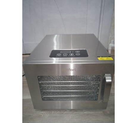 Вполне достойная сушилка. В интерьер кухни стиля лофт вписался отлично. С не закрытой дверцей, корпус немного гуляет. Шум умеренный, не напрягает. Нравится, что у сушилки широкий диапазон температур, для некоторых продуктов это ускоряет процесс сушки