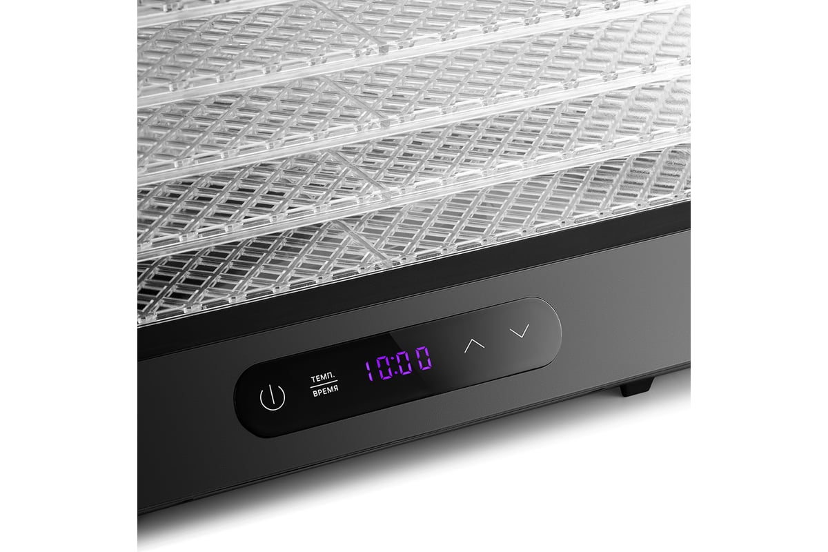 Сушилка имеет в комплекте 5 поддонов из прозрачного пластика и 4 силиконовых поддона для пастилы. Благодаря прозрачным пластиковым поддонам вы легко можете наблюдать за процессом сушки. Пластик поддонов —BPA-free, он не содержит Бисфенол А, тем самым данный вид пластика безопасен для здоровья.