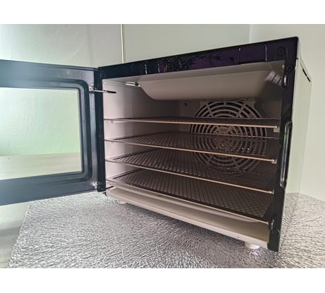 На сушилке можно установить температуру сушки в диапазоне 35–70°С с шагом 5 градусов. Сушилка оснащена таймером до 24 часов работы с шагом 1 час.