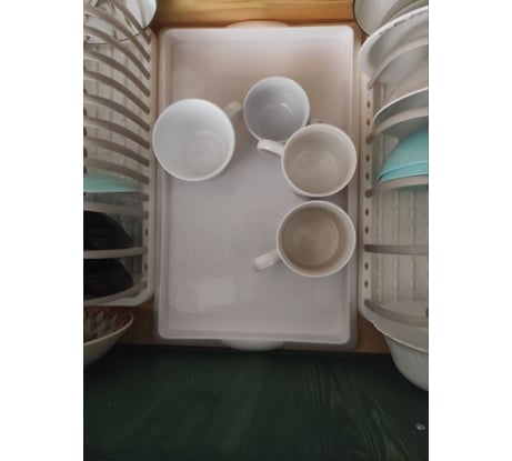 поддон сушилки подходит по длине к стандартному ящику кухонной тумбы. использую его для чашек. Для тарелок пришлось купить сушилку другого производителя.