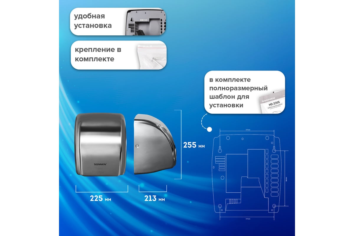 - Поток воздуха 25 м/с Обеспечивает быстрое испарение влаги