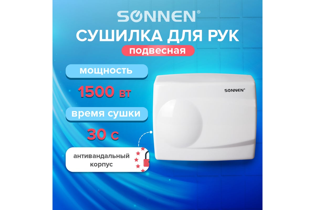 Сопутствующие товары для сушилки SONNEN HD-298 1500 Вт, время сушки 30 секунд, металлический корпус, белая