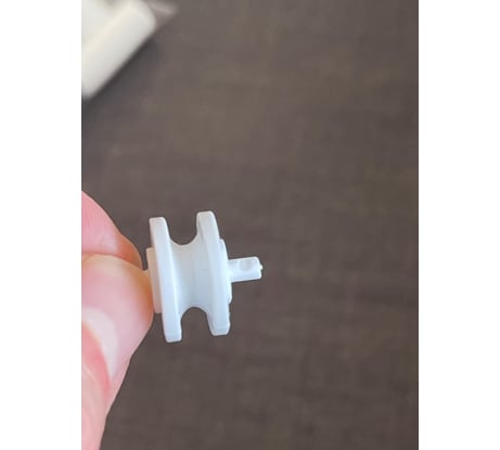 Ролики, на которых крутится веревка при опускании, отлиты так, что литники находятся прямо на оси! Поэтому они не цилиндрической формы, а с щербинкой. Поэтому они постоянно застревают в пазах, веревка начинает протирать канавку в ролике и со временем рвется. Понятно, что заменой веревке нельзя решить вопрос, так как ролик уже испорчен.