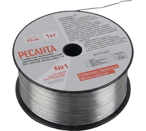 Сварочная проволока порошковая самозащитная без газа 0,8 мм катушка 1 кг Ресанта предназначена для выполнения сварочных работ без использования дополнительного защитного газа.