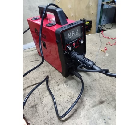 Короткий провод минус. Тугой курок на горелке. Поработать удалось совсем немного. Использовал всего пол катушки проволки, которая идёт в комплекте и аппарат стал выключаться. Уходит в перезагрузку постоянно. Покупал в декабре 24г за 8800, сейчас подешевел на 1000.