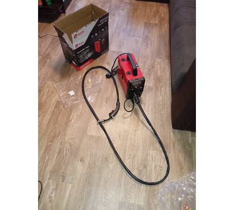 Короткий провод минус. Тугой курок на горелке. Поработать удалось совсем немного. Использовал всего пол катушки проволки, которая идёт в комплекте и аппарат стал выключаться. Уходит в перезагрузку постоянно. Покупал в декабре 24г за 8800, сейчас подешевел на 1000.