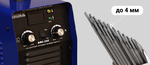 - Настраивайте просто На передней панели расположен регулятор с плавной настройкой силы тока от 20 до 200 А