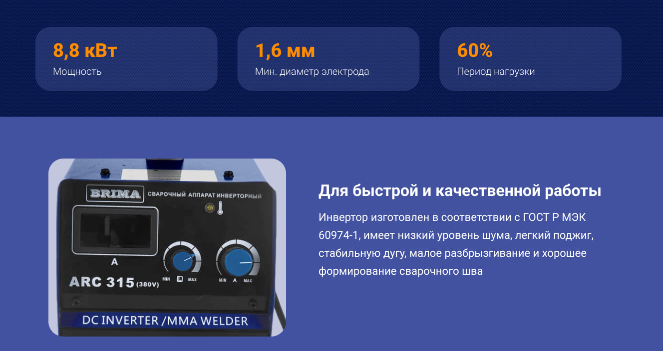 Сварочный инвертор Brima ARC-315 380В 0005913