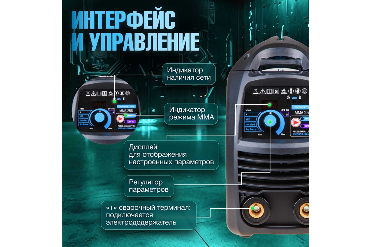 Сварочный инвертор SOLARIS MMA-256 обеспечивает качественный сварной шов при равномерной обработке металла. Аппарат имеет высокопрочный корпус с надежной вентиляцией - это повышает ПВ даже при наличии лишь пассивной системы охлаждения.