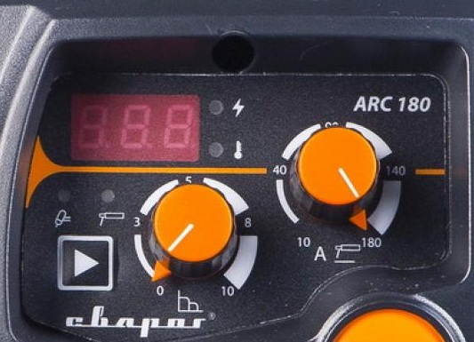 Функциональное управление Панель управления оснащена плавным регулятором тока сварки, регулятором форсажа дуги, а также цифровой индикацией задаваемого сварочного тока, что делает работу пользователя более комфортной. |