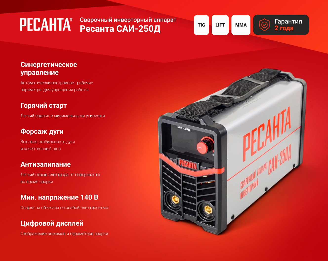 Сварочный инверторный аппарат Ресанта САИ-250Д 65/141