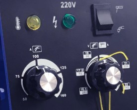 Удобная панель управления Панель управления BRIMA MIG-160 220В 0013543 оснащена индикаторами перегрева и подключения к сети. |