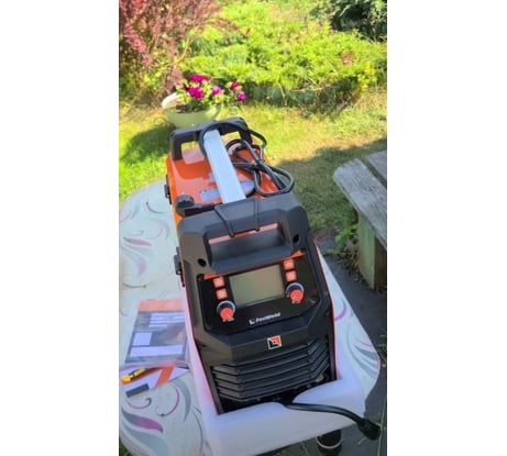 Аппарат пришел в идеальной упаковке, без повреждений, с полной комплектацией, включая даже спецнаконечники для алюминия и два типа роликов. Вот что особенно радует: Основные преимущества: 1. Синергетическое управление - гений инженеров Foxweld! Выбираешь тип сварки, толщину проволоки и металла - аппарат сам настраивает ток, скорость подачи и индуктивность. Швы получаются ровными, без брызг, даже у новичка. 2. 4 режима в одном устройстве: - MIG/MAG (газ) - варит сталь, нержавейку. - FLUX - для порошковой проволоки **без газа** (отлично для дачи!). - TIG LIFT - аргоновая сварка алюминия (требуется докупить горелку). - ММА - ручная дуговая электродами до 5 мм. 3. Работает при низком напряжении - в гараже у меня иногда падает до 150 В, но аппарат стабильно держит дугу • 4. Богатая комплектация: горелка с евроразъемом (3 м), держатель электродов, тефлоновый канал для алюминиевой проволоки, набор наконечников. Сразу готов к работе!