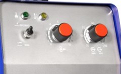 Простая и понятная панель управления Устройство имеет простую и понятную панель управления с регуляторами скорости подачи проволоки и напряжения, а также индикаторами питания и термозащиты. |