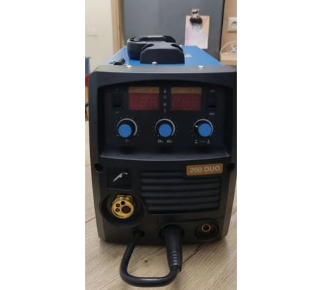 Общий вид аппарата отличный, приятный дизайн, расположение органов управления и разъемов. Полностью настраиваемый процесс сварки: каждая "крутилка" настраивает свой параметр: скорость подачи, вольтаж, индуктивность. 2т/4т режим. Можно сваривать на минимальных настройках, например поставить хорошую миниатюрную сварную точку/прихватку 3-4мм Ф. Но и запас мощности приличный. Параметры честные, что подтверждают и обзоры, равно как и приятный звук дуги и ровный процесс сварки. Горелка замечательная, лёгкая, рука не устает, удобно лежит в руке, люфта сопла практически нет, несмотря на пружинный механизм фиксации. Налипает брызг мало даже на порошке - но это может зависеть от фирмы (Все же советую пользоваться антипригарными жидкостями, хоть тормозухой; не колотить соплом о железо и не ковырять отвёрткой нагар, а пользоваться чем-то более мягким: палочкой, медью и тп.). Ниже "недостатки", однако все искупает отличный сварочный процесс. Очень нравится как варит и сплошной с газом и порошковой. ММА пока не пользовался, пока не было нужды. ____ Фото не получается добавить