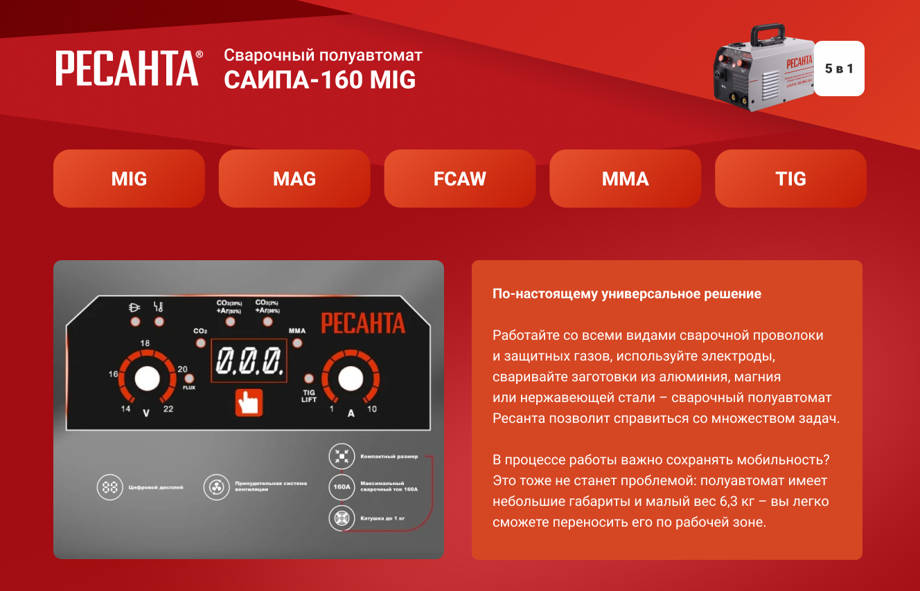 Отзывы о сварочном полуавтомате Ресанта САИПА-160