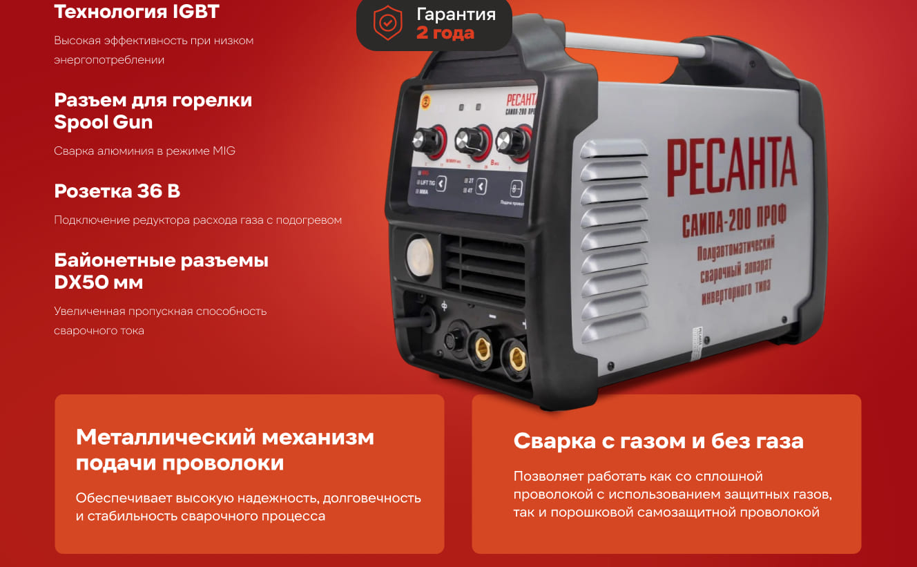 Вопросы и ответы о сварочном полуавтомате Ресанта САИПА-200ПРОФ MIG/MAG
