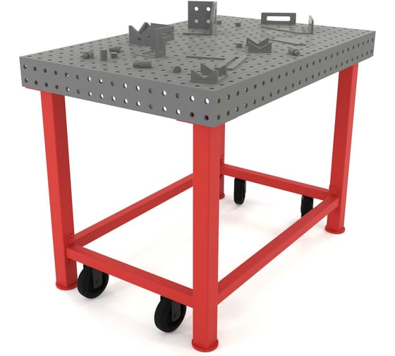 Сварочный стол с оснасткой Flamet 1000х1500 Expert 12 мм, подстолье с перемычками и колесами КОPBK-1000x1500-12
