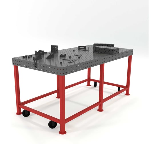 Сварочный стол с оснасткой Flamet 1000х2000 Optima 8 мм, подстолье с перемычками и колесами КОPBK-1000x2000-8