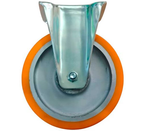 Неповоротный стальной кронштейн с площадкой фиксирует колесо в одном направлении, обеспечивая стабильность и прямолинейное движение тележек и платформ. Шариковый подшипник снижает сопротивление качению и облегчает вращение колеса под нагрузкой.