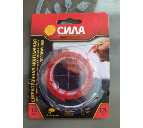 Отзывы о сверхпрочной пеноакриловой двусторонней монтажной ленте СИЛА 12 мм х 1.5 м Б0046371