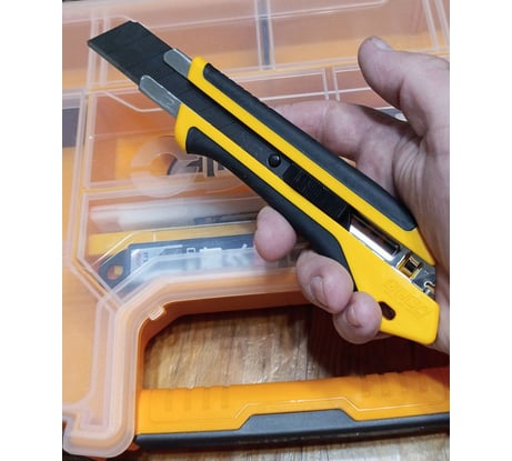 На днях купил второй такой нож! Первым пользовался более года, потом одолжил приятелю на дачу, там он и застрял. Приятель отдавать не желает, говорит, купи себе новый! Им я много чего резал - гипсокартон, ГВЛ, кожу, резину, пластики: использовал как маркерный и подрезной нож в столярке, даже тонкую стальную жесть!!! У ножа прекрасная эргономика, в руке как влитой! Прочный пластик и резиновые накладки. Фиксация лезвия надежная, если пользоваться ею без дури и с умом! Там латунный болтик! Более чем за год использования, никаких люфтов и поломок, даже после многократных падений. Важно помнить, что если работаете с сыпучими материалами, в пыльной среде, где много абразива, не забудьте продуть и капнуть пару капель масла! Если сравнивать его с похожим от "Giant" (это его, чуть увеличенная китайская копия), то разница есть! Китаец тоже неплох, и стоит в два раза дешевле, но эргономика и прецизионность далеки от японца! У китайца пластик не такой прочный, и нет той плавности хода лезвия, как у японца. По габариту китаец больше, но в руке не так удобен. Хотя ладонь у меня не маленькая. В сравнении с японцем, его размеры кажутся избыточными. Но тут, решать какждому, исходя из бюджета и задач!