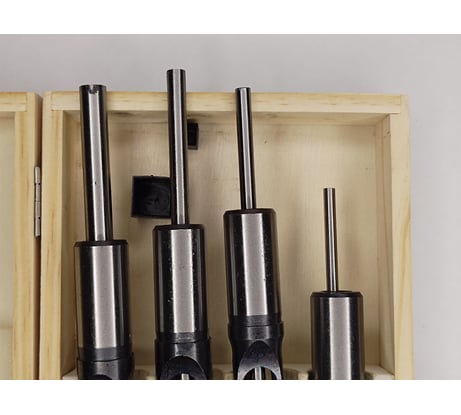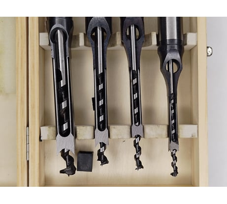 Сверла-стамески для квадратных отверстий 4 шт. поставляются в удобном деревянном кейсе.