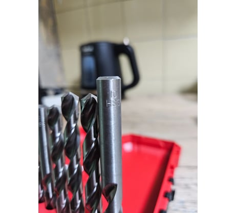 Небрежно исполненый кейс это большой минус. При сверлении тоже не волшебные ощущения, смотрите на фото, это сталь3 10мм всего лишь и уголок с нержавейки. Ближнее отверстие к зрителю просверлено сверлом за 40 рублей, для сравнения. Визуально сверла ровные, но при заходе черте что происходит.(5фото) Маркировка просто HSS, без G, что непонятно, т.к. на блистере HSSG, но вроде как подтверждается. Не могу рекомендовать.