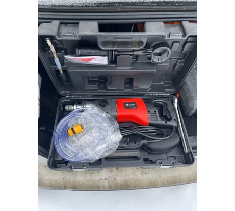 Купили в качестве эксперимента, потому что на некоторые бренды цены как то сильно выросли. Бурим в основном под трубы и кабели, бетон, плита, монолит, все берт, удар тут поступательный. Вибрация адекватная, держать удобно, подача воды присутствует. К самой дрели у меня претензий нет, кейс да, защелки вылетают, но это мелочи
