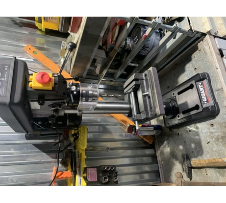Есть у меня фрезерный станок FP-25. Стоит в подвале в мастерской и весит почти 200 кг. Но иногда чтото надо посверлить на улице, иногда и на 3й этаж с собой взять там на балконе тоже рабочее место. Поэтому выбор пал на данную модель. Упаковано так, что не аытащить, пртшлось перевернуть коробку и вытащить как куличик из формочки. Все целое, вме на месте. Собрал без проблем. Попробовал на той скорости, что стояла просверлить полосу 5 мм сверлом тоже 5 мм. Сверлит без проблем. Поставил обороты на минимум, вставил сверло 13мм, просверлил эту же пластину тоже легко. Основание чугуний, стол тоже. Колонна толстая жесткость достаточная. Тисков в комплекте нет, заказал его же тиски. FV-75. Расстояние пазов межосевое на столе и основании разное. Получается и тисков надо двое. Не есть гуд. Шацб и гроверов к болтам крепления колонны нет от слова совсем. Поставил свои, благо есть в запасе. Крепление основания к поверхности установки не очень корректно сделано, лучше бы по углам 4 точки. Шумит привед видимо изза ремня. Ремень придется искать , в магазине гет. Ну и одну звезду минус, за то, что убради зберсрасибо, а в оплате еще оставалось. Пришлось два раза отменять оплату, пока разобрался. Вицелом нормальный станок, если оаботать аккуратно прослужит долго.