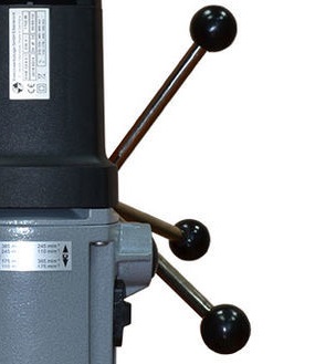 Удобство в работе Три длинные рукояти с пластиковыми наконечниками для плавного опускания шпинделя обеспечивают надежный хват и удобство рабочего процесса. |