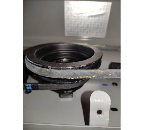 Двигатель под своим весом прогибает пластину крепления,из за этого нет одной плоскости шкивов,пришлось подкладывать шайбы.стойка слабовата,для такого веса нужно потолще стенки трубы.