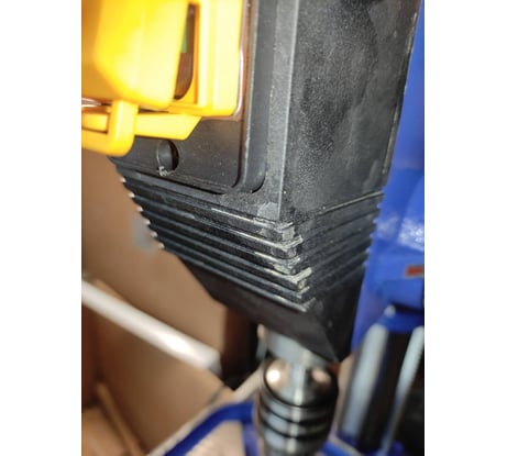 1. Радиальный люфт пиноли у крайнего нижнего положения при покачивании ее рукой. Кончик сверла гуляет около 2 мм. 2. Отверстия под фиксирующие винты на шкивах толком не обработаны( на фото), думаю будет страдать ремень. 3. Кривая сборка(на фото). 4. Кривоватый патрон- заметно биение на тонких сверлах 3 мм и тоньше. Надеюсь что патрон. 5. Дальний от стойки край подвижного стола, при упоре в него ( в стол, по центру)сверлом (давление на рукоятке 1,5-2 кг) смещается на 1,5-2 мм. 6. Убогие ручки-шарики с облоем оттлитья, к тому же криво накрученные. 7. Самые дешевые тиски. Вообщем типичные для таких станков недостатки.